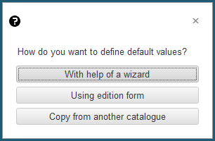 2 c - Copy from another catalogue: The last and fastest possibility that you have to define default values is to use the Copy from another catalogue button. You will then have to select the catalogue from which the default values will be copied from as show below and you're done!