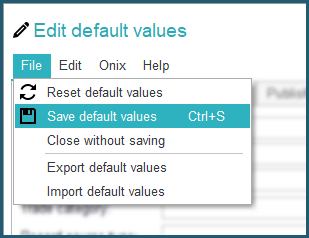 Once your default values are defined, simply save them using the menu File / Save default values: